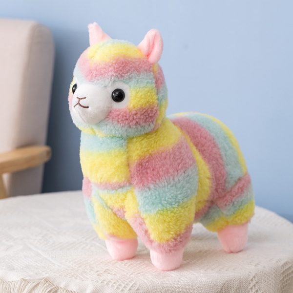 カラフルなレインボー漫画のアルパカのぬいぐるみ: カラフルなレインボーのデザインが特徴の楽しくて愛らしいぬいぐるみで、あらゆる機会のギフトに最適です。