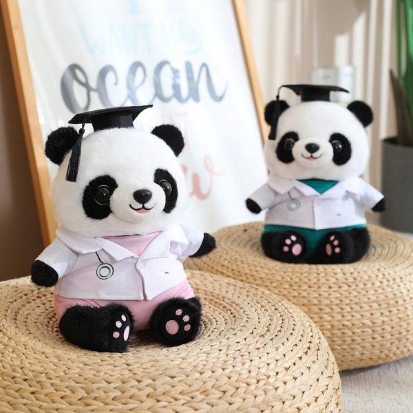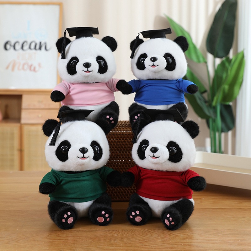 ① 《かわいい卒業クマ》: このカートゥーン卒業クマは博士帽をかぶったパンダのデザインで、特別な卒業記念にぴったりのぬいぐるみです。